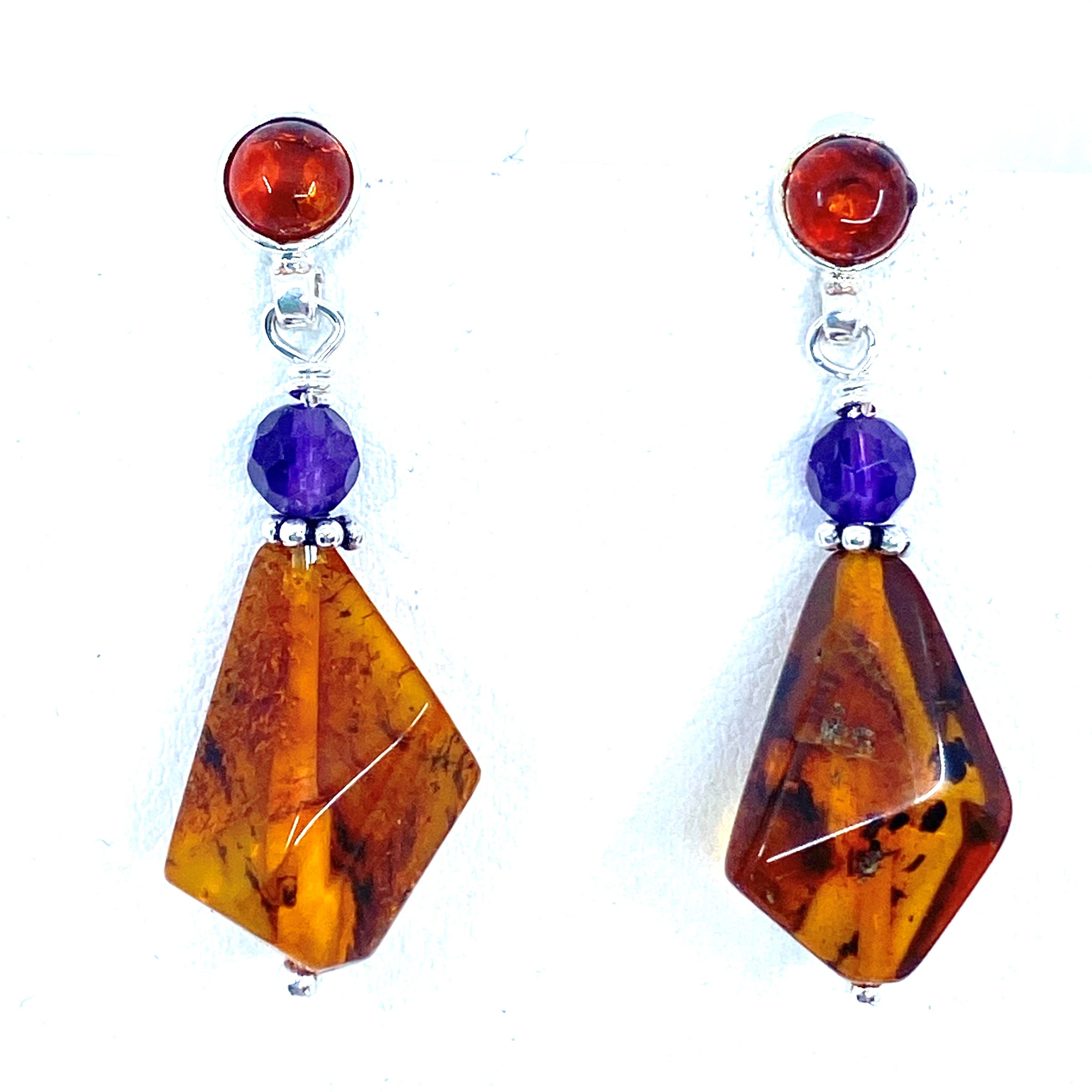 Stones: Diamond Shape Amber with Amethyst Accent