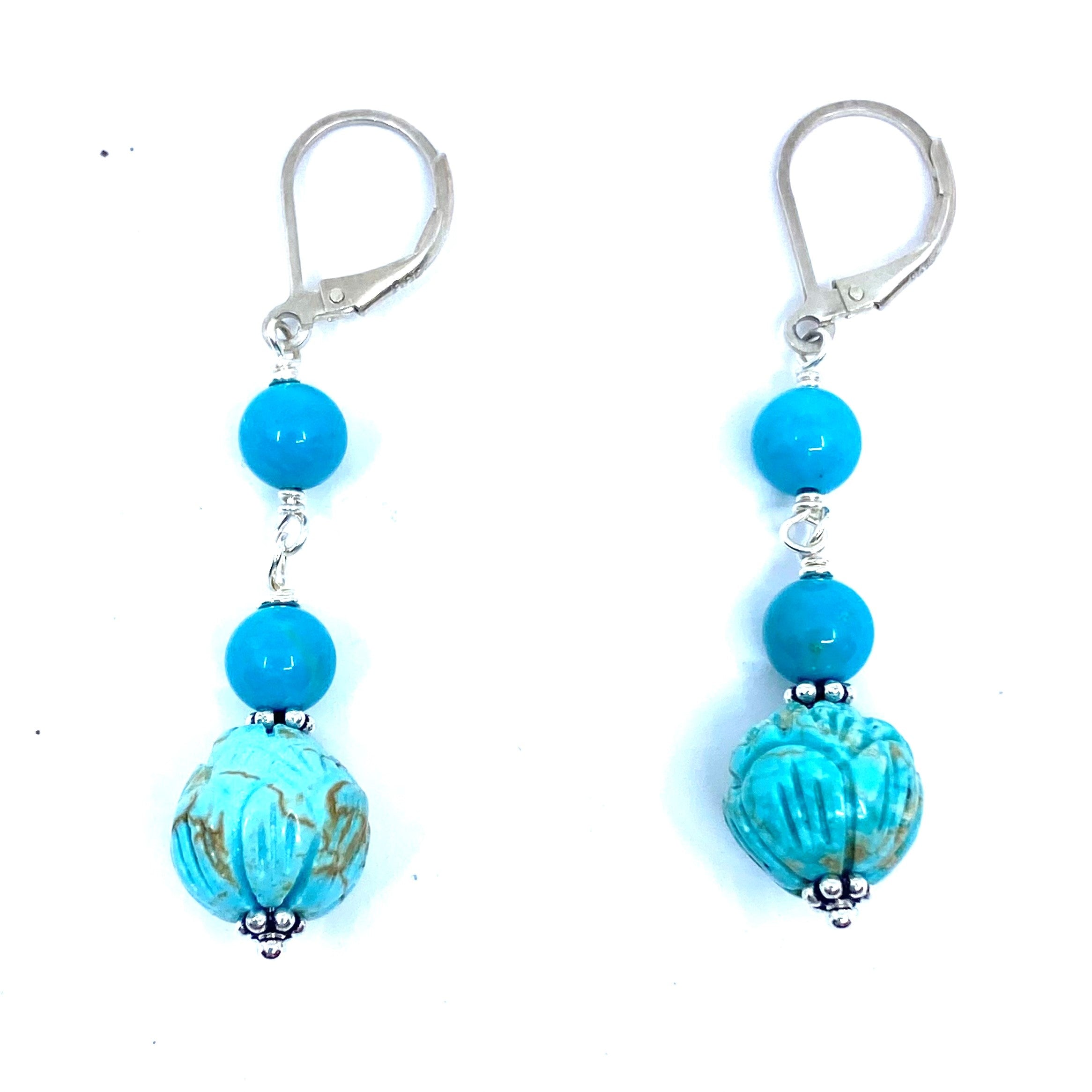 Carved Blue Chalk Turquoise Sterling Silver Earrings