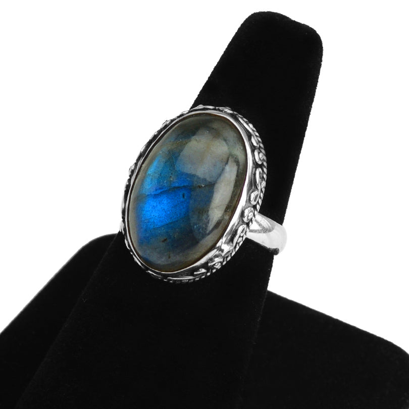 Shimmering Blue Labradorite Sterling Silver Ring - Size 9