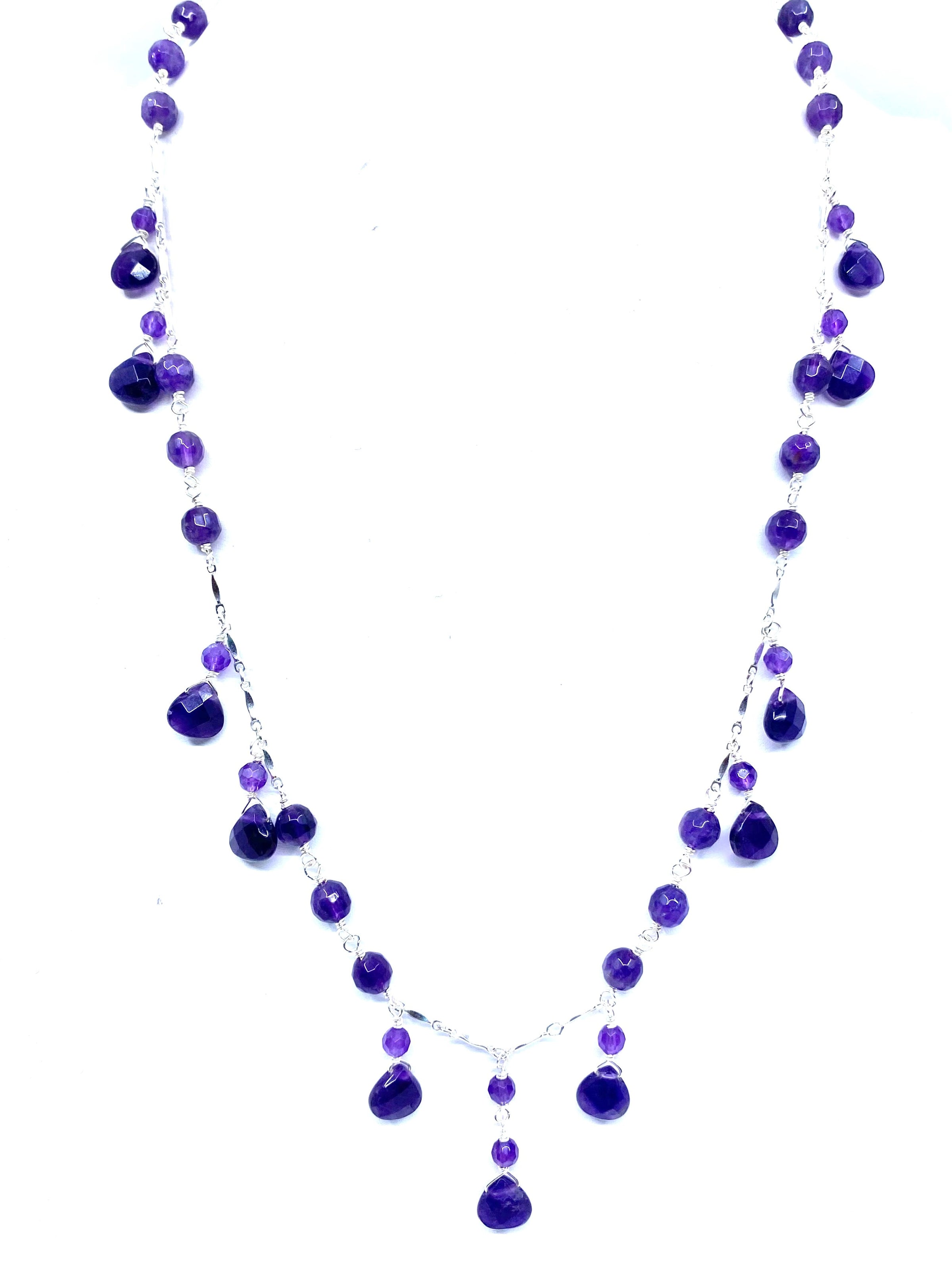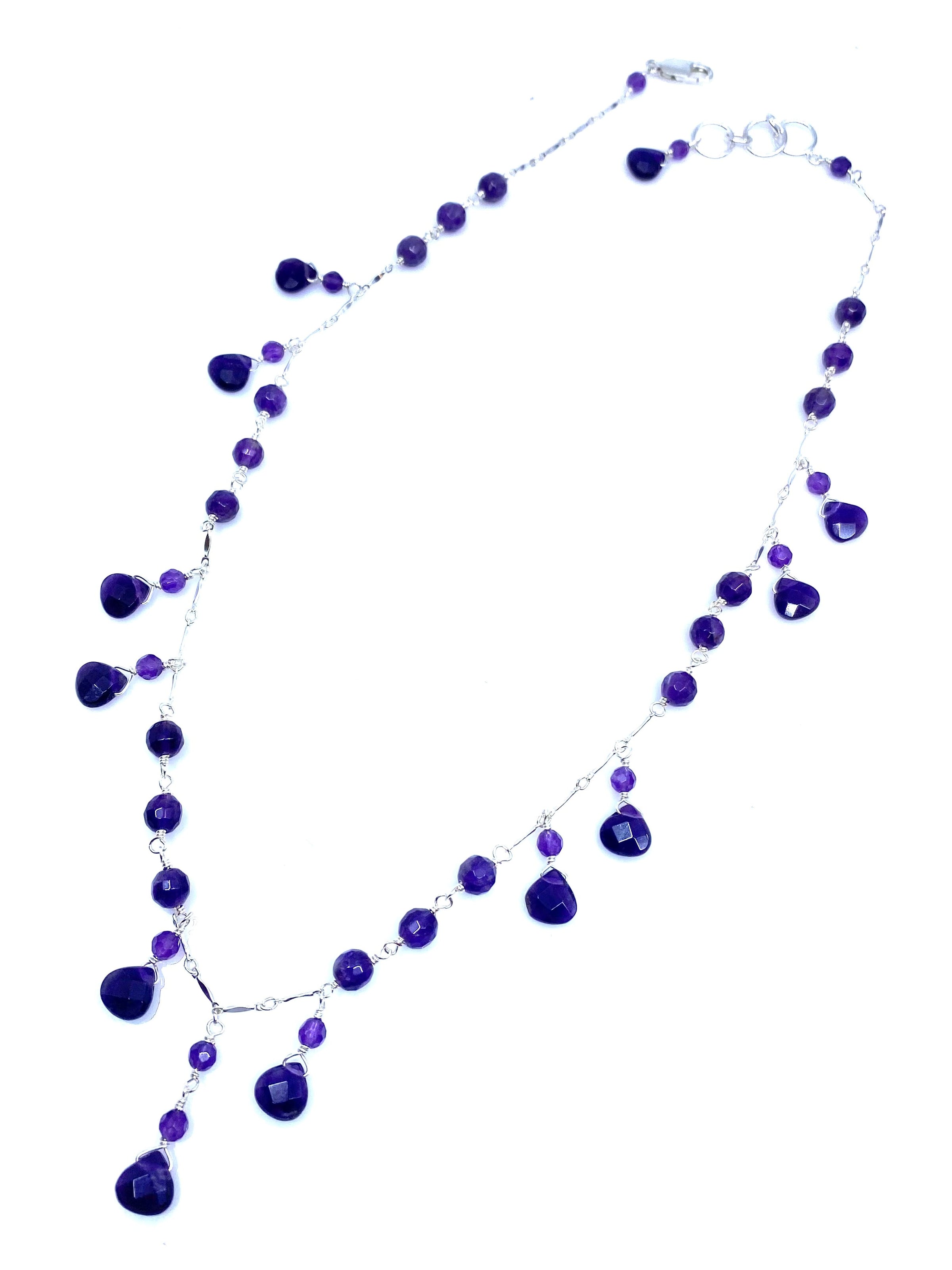 Gorgeous Amethyst Floating Drops Sterling Silver Statement Necklace