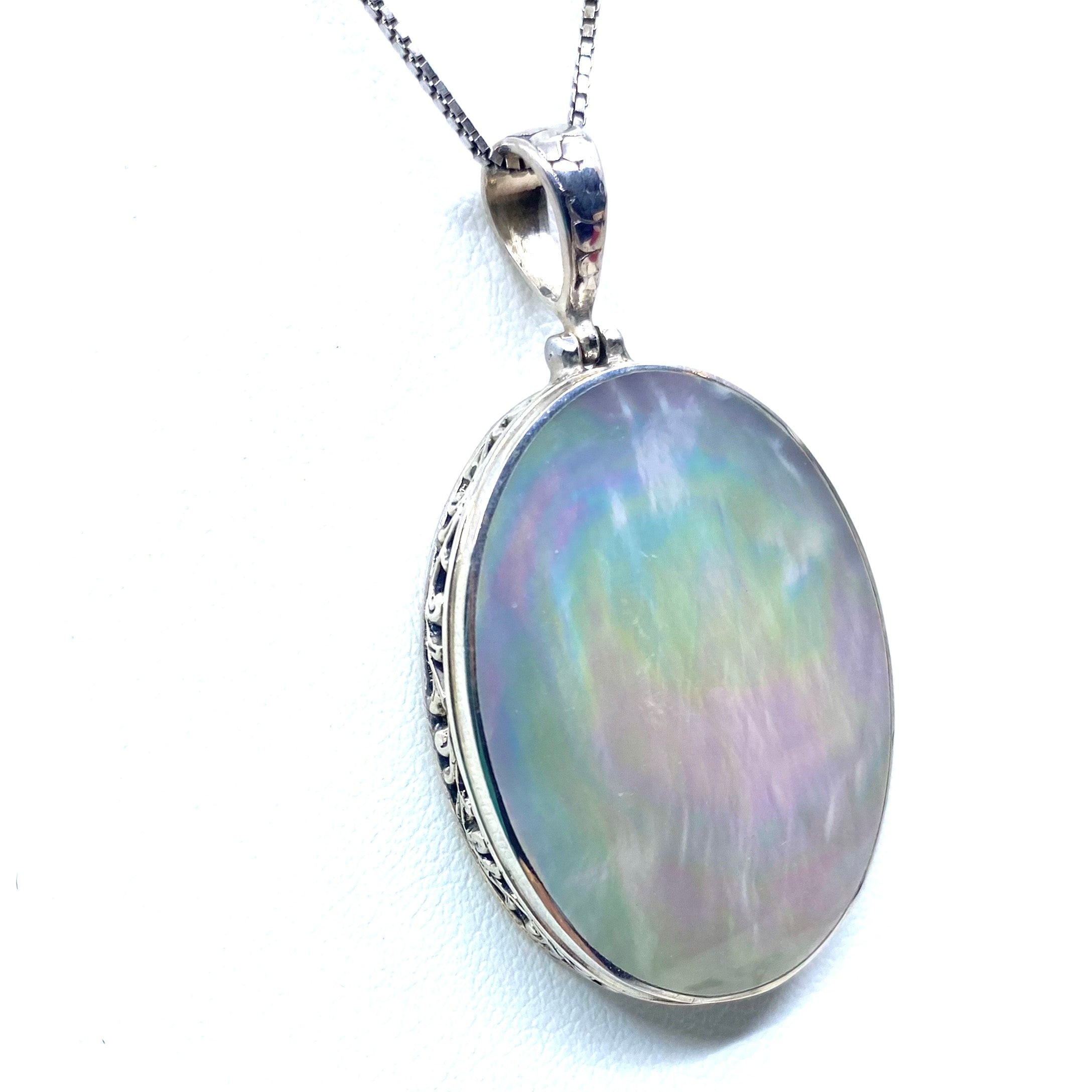 Balinese White Mother of pearl Sterling Silver Statement Pendant