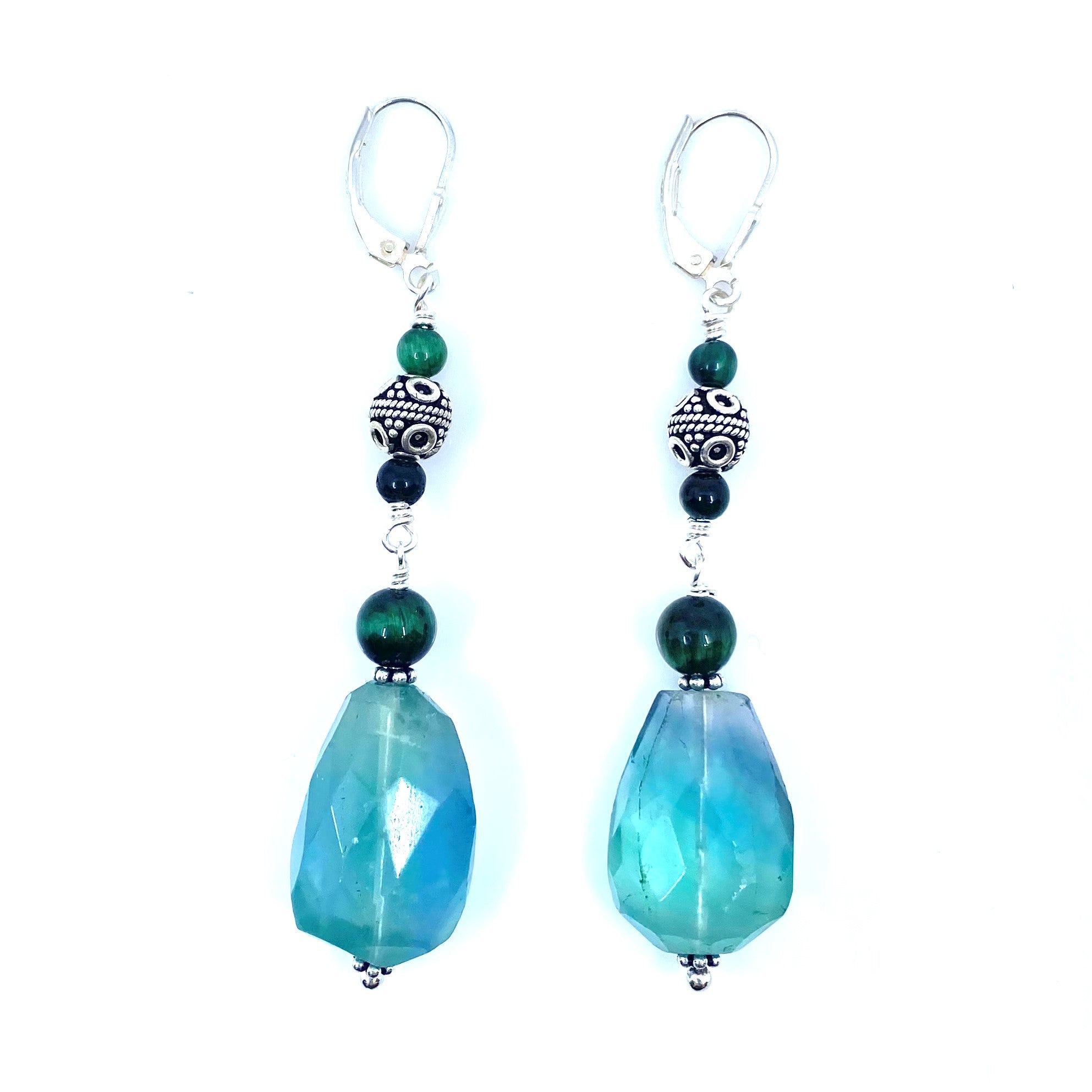 Beautiful Fluorite Malachite Sterling Silver Statement Earrings