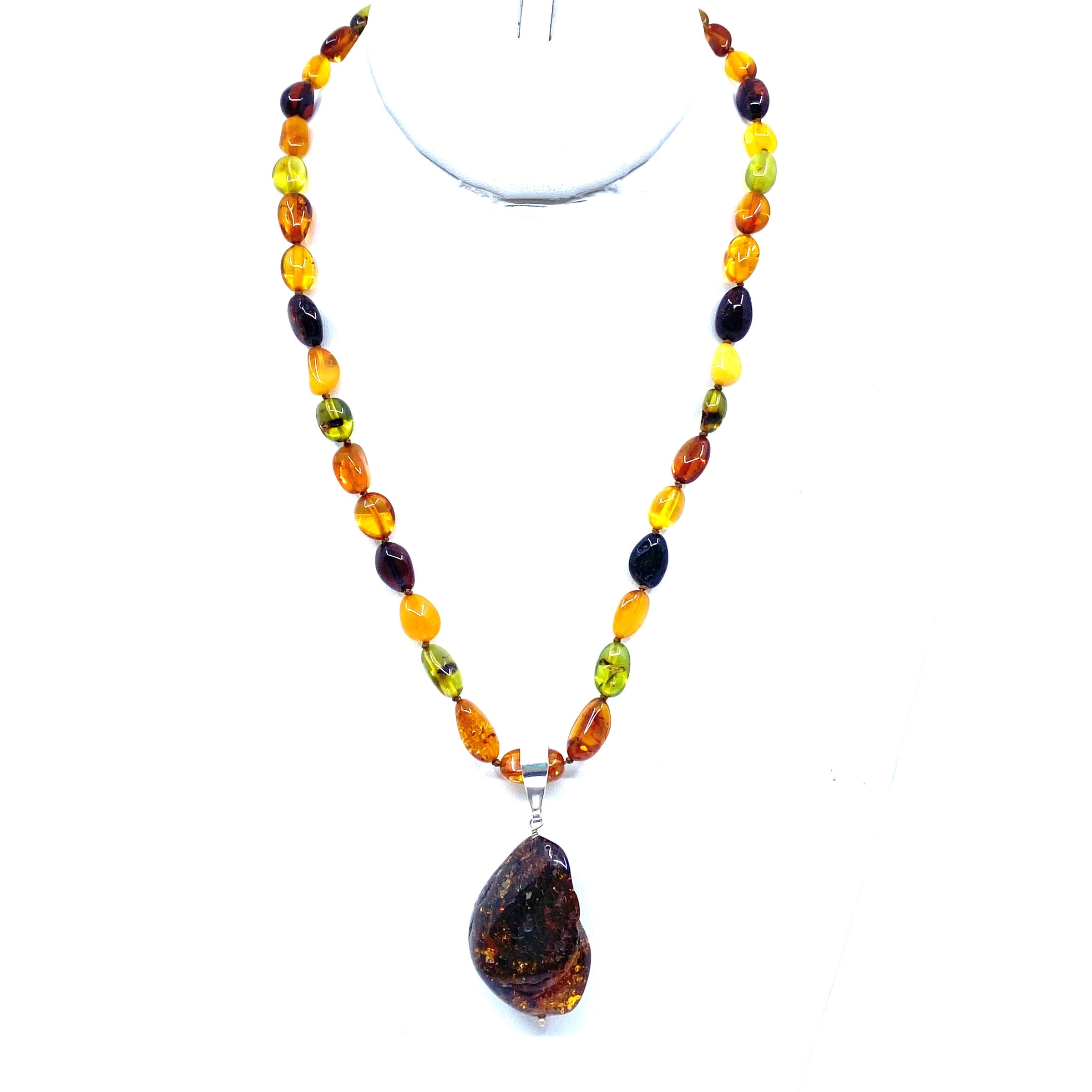 Colorful Statement Amber Necklace with Large Cognac Amber Centerpiece