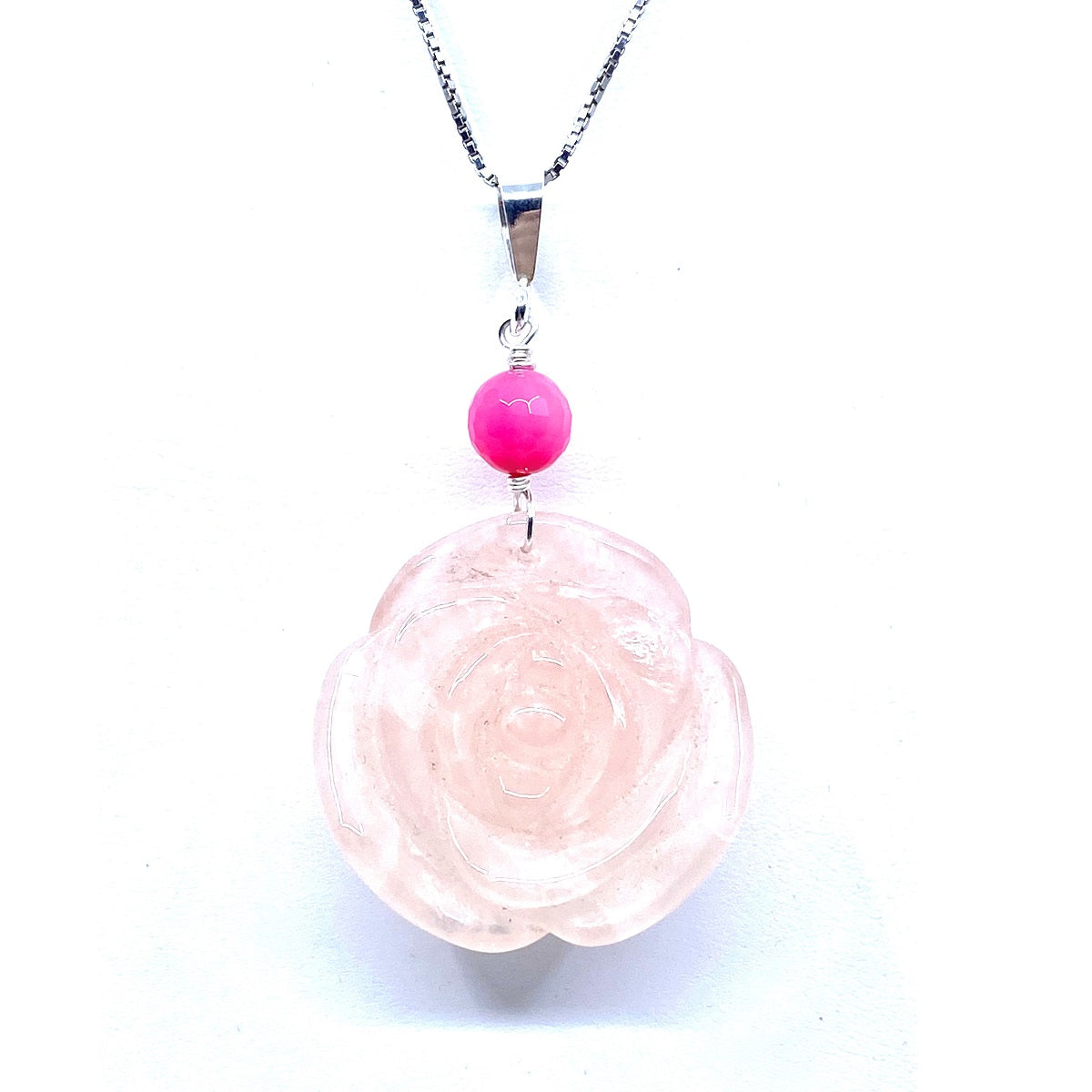 Gorgeous Carved Rose Quartz Sterling Silver Rose Pendant
