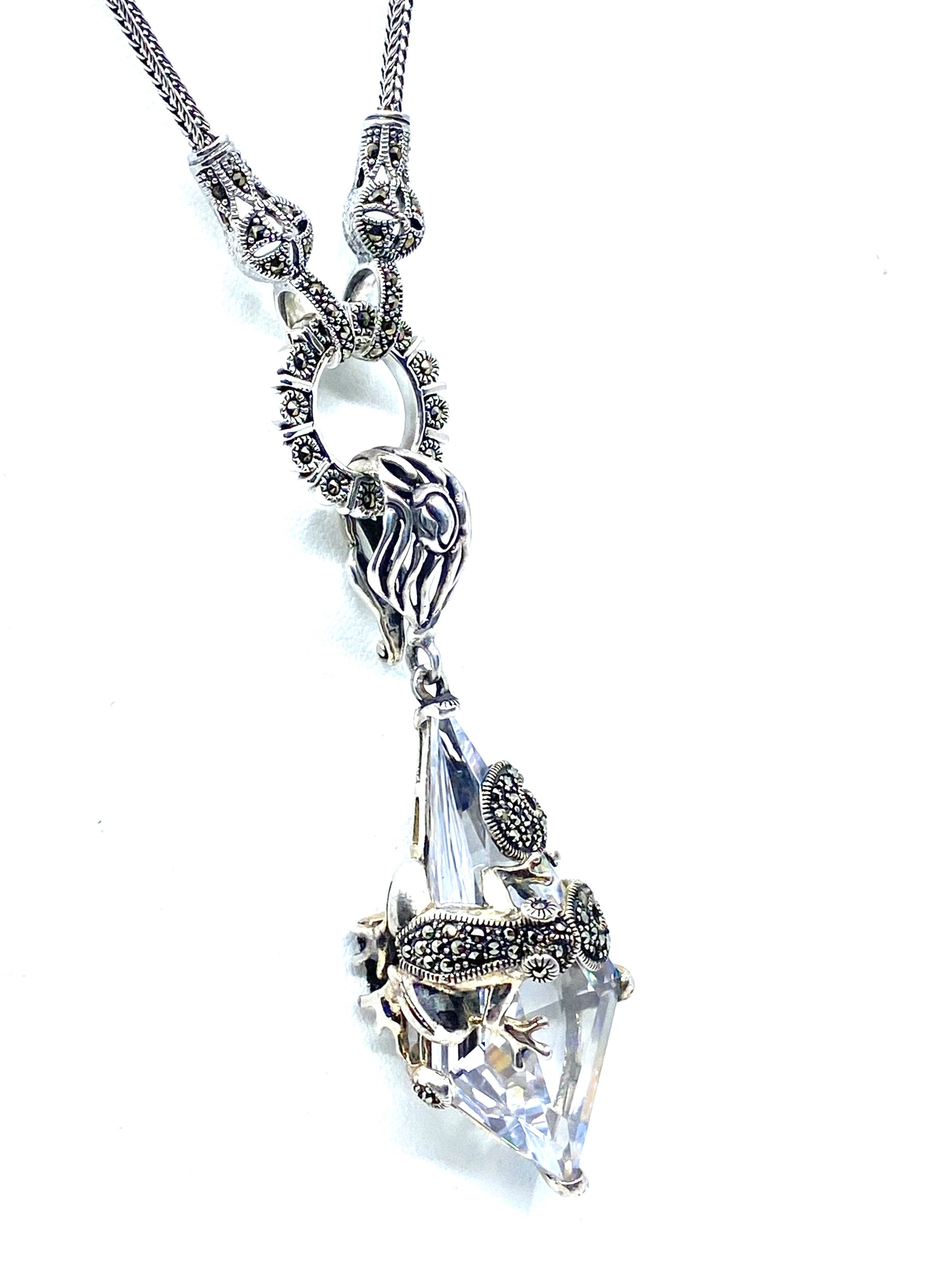 Gorgeous Crystal Frog Marcasite Sterling Silver Statement Necklace