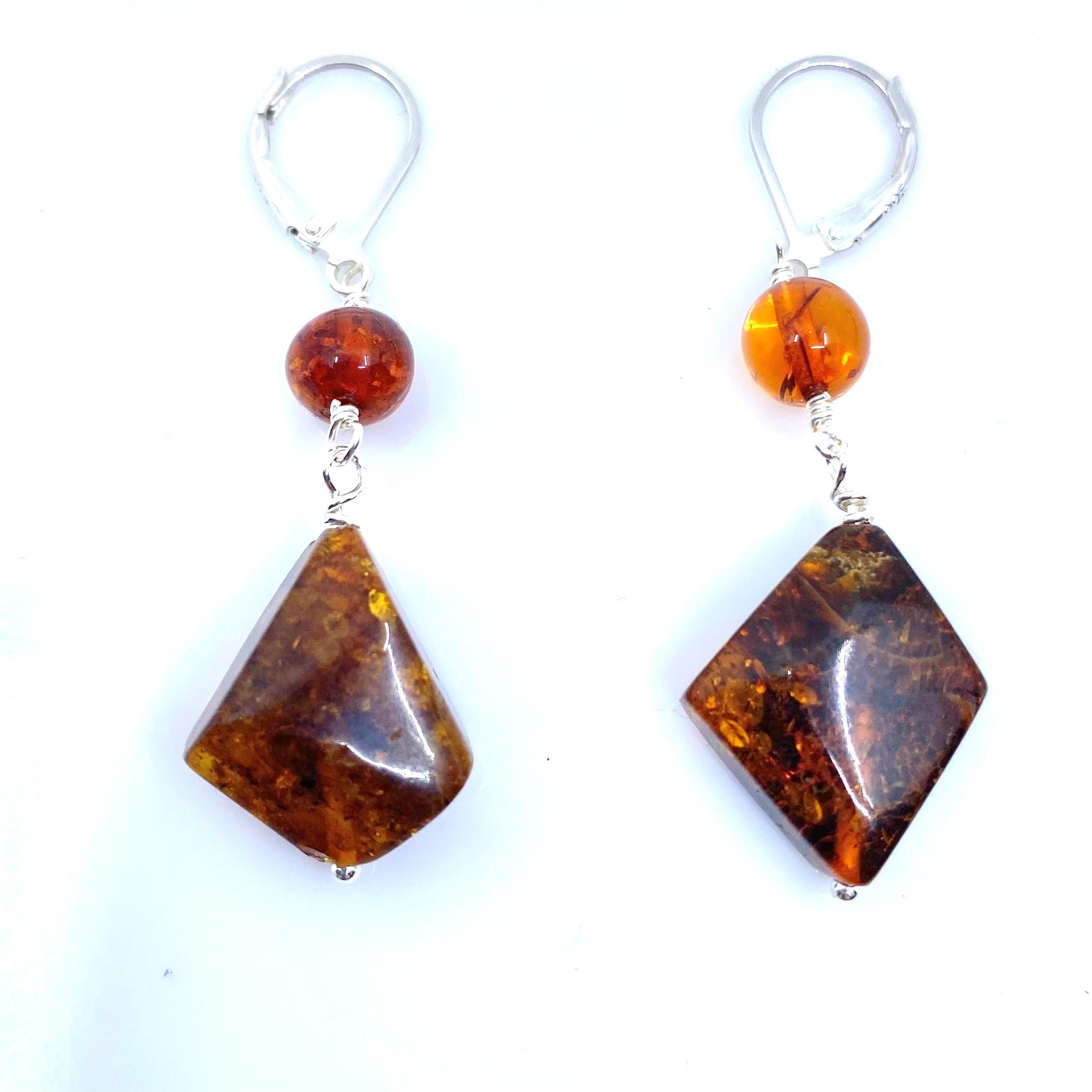 Gorgeous Dark Cognac Diamond Shape Sterling Earrings