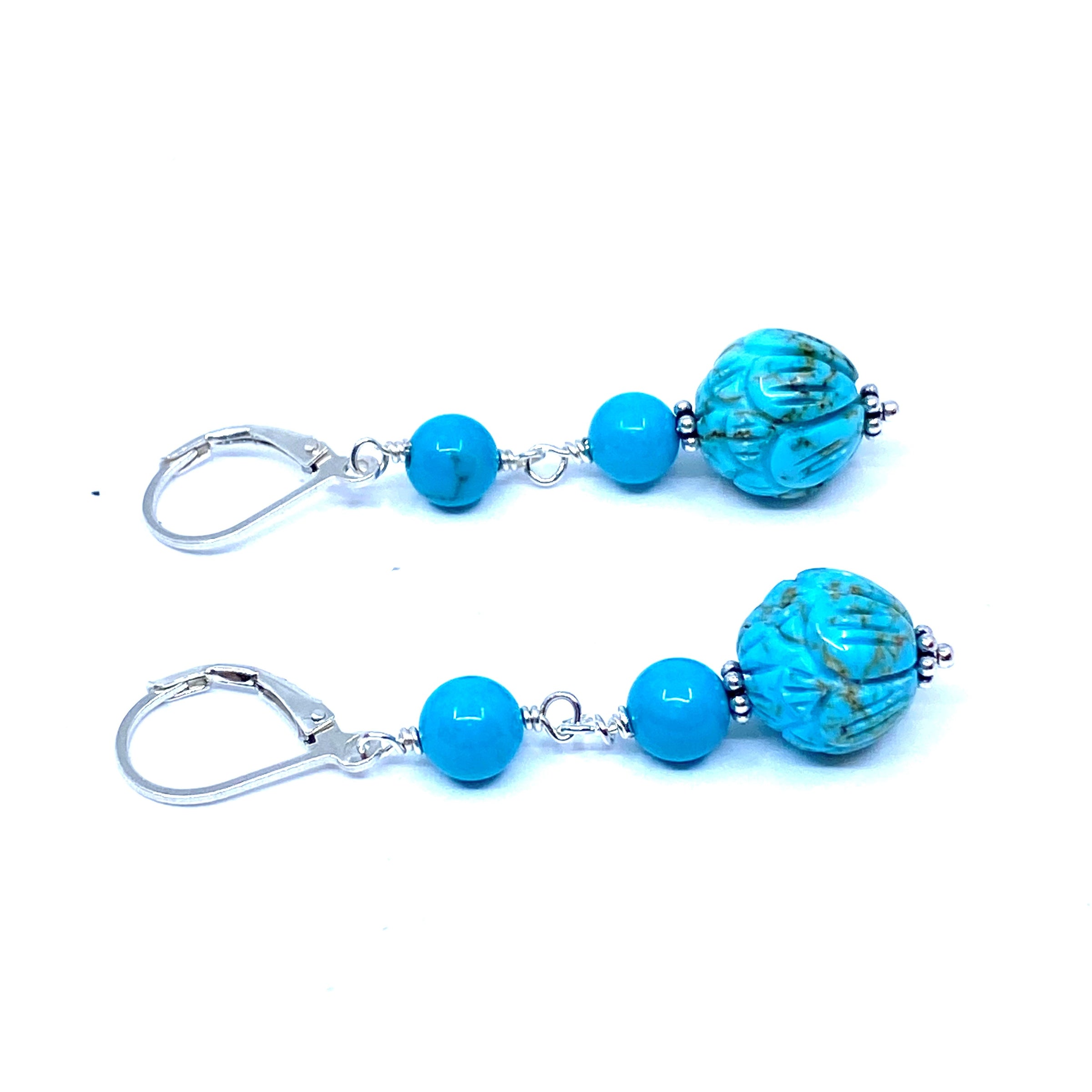 Luscious Vibrant Blue Carved Chalk Turquoise Sterling Silver Earrings