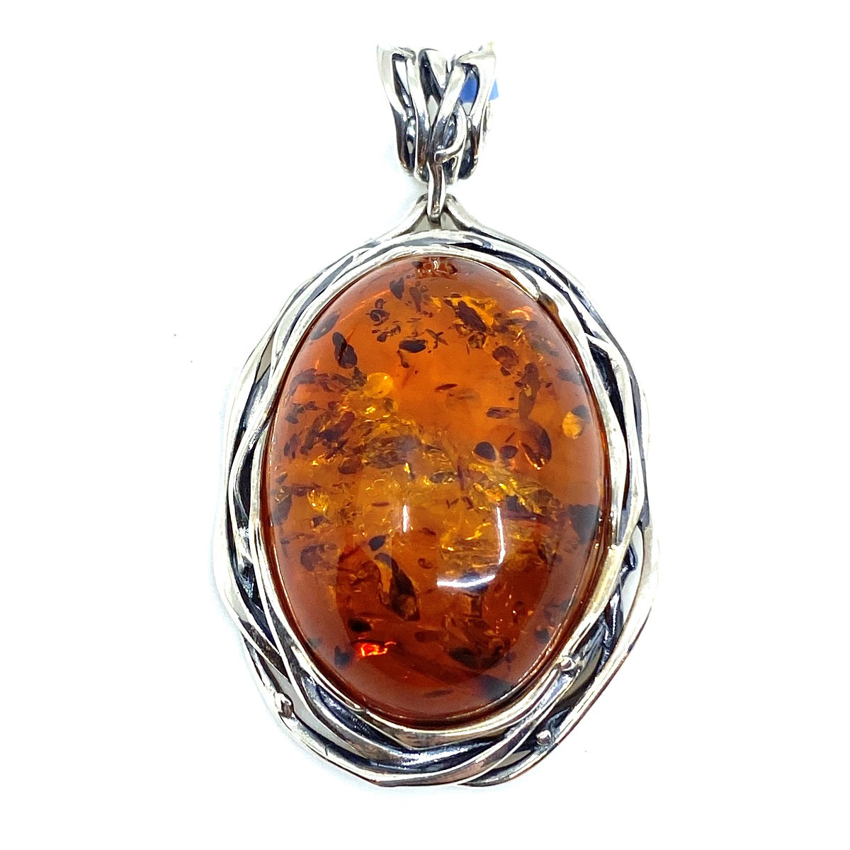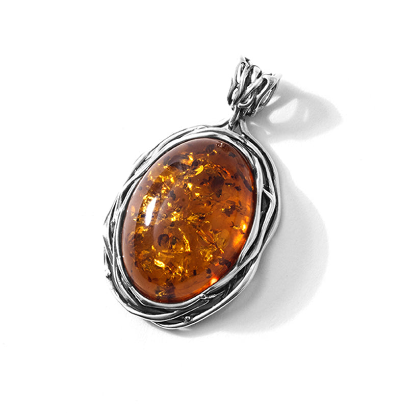 Magnificent Large Cognac Amber Weave Sterling Silver Statement Pendant