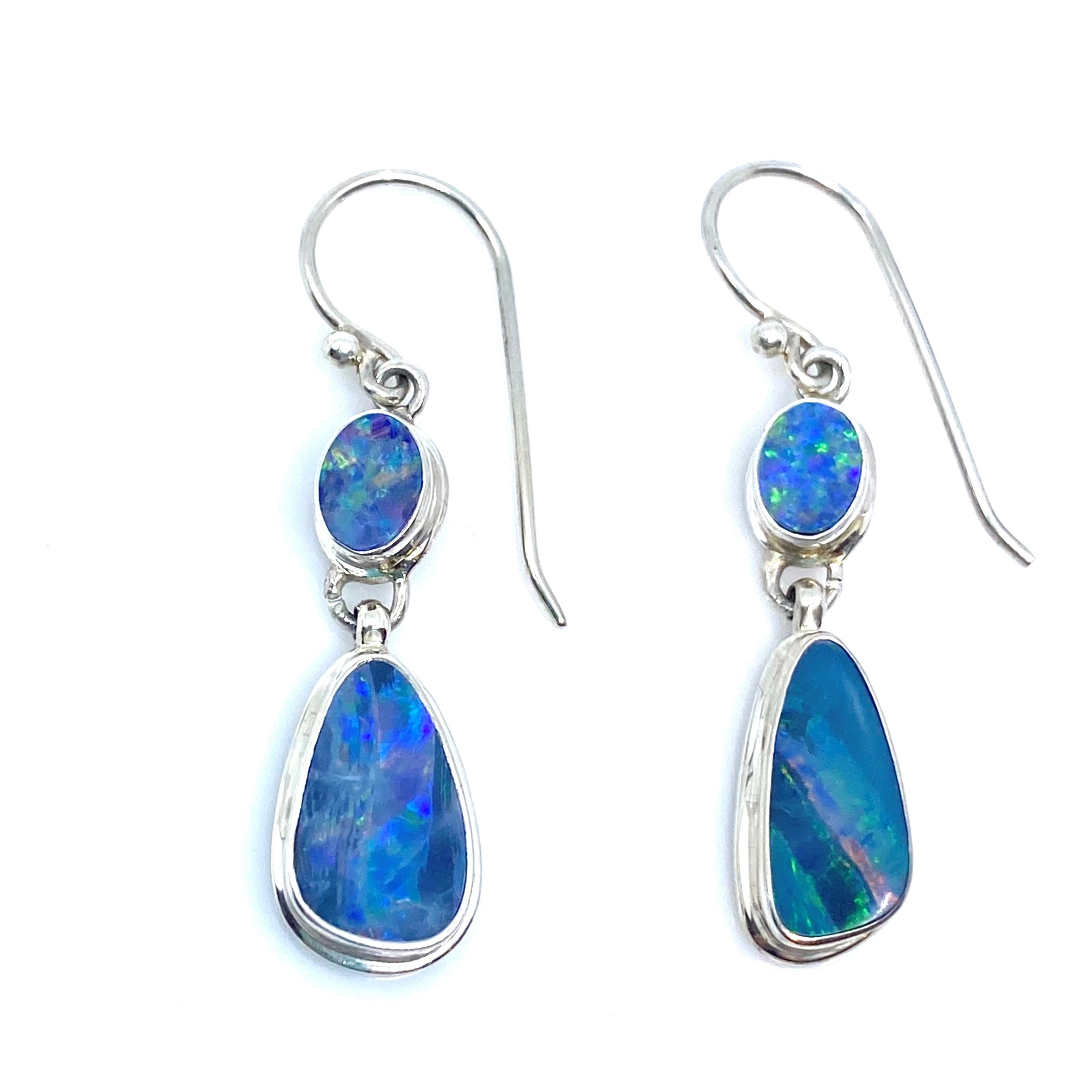Gorgeous River Blue Opal Sterling Silver Statement Earrings