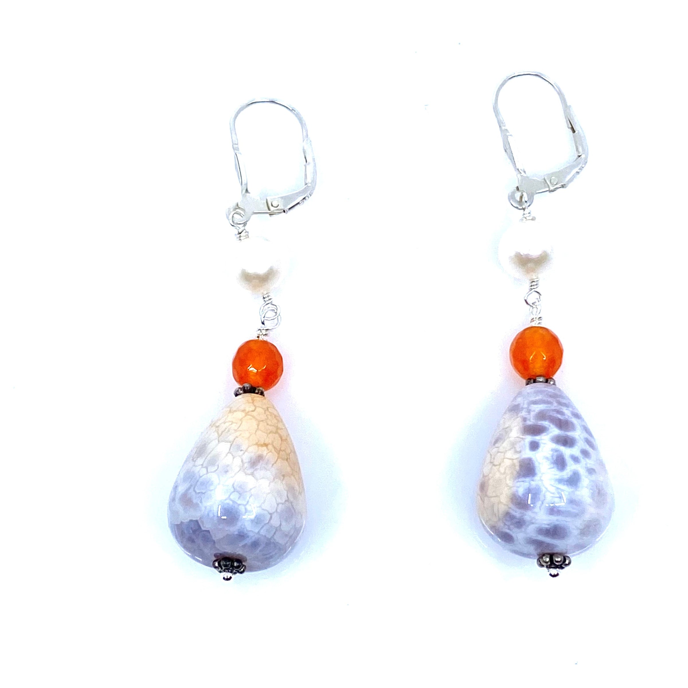 Sedona Agate Carnelain Freshwater Pearl Sterling Silver Earrings