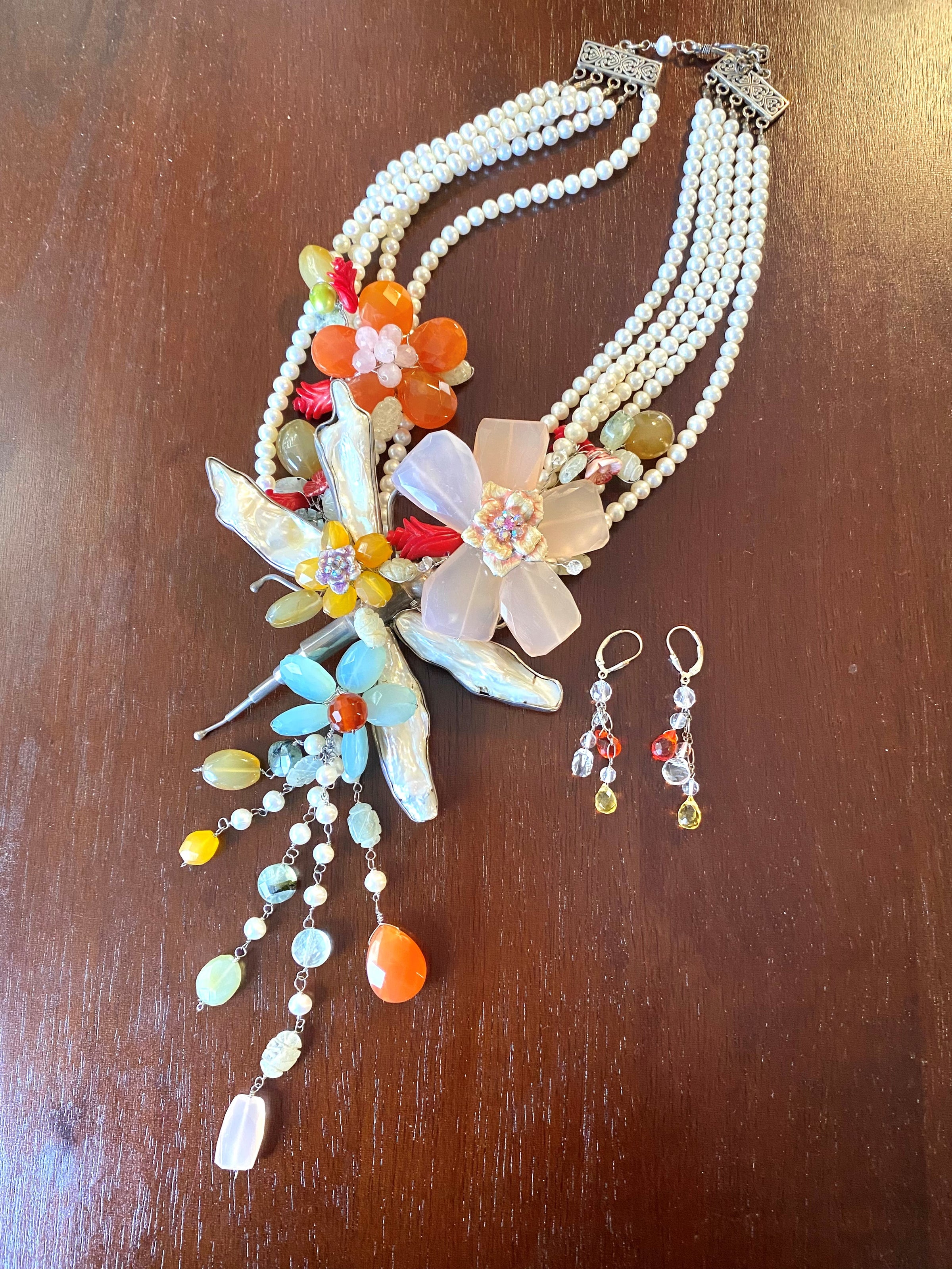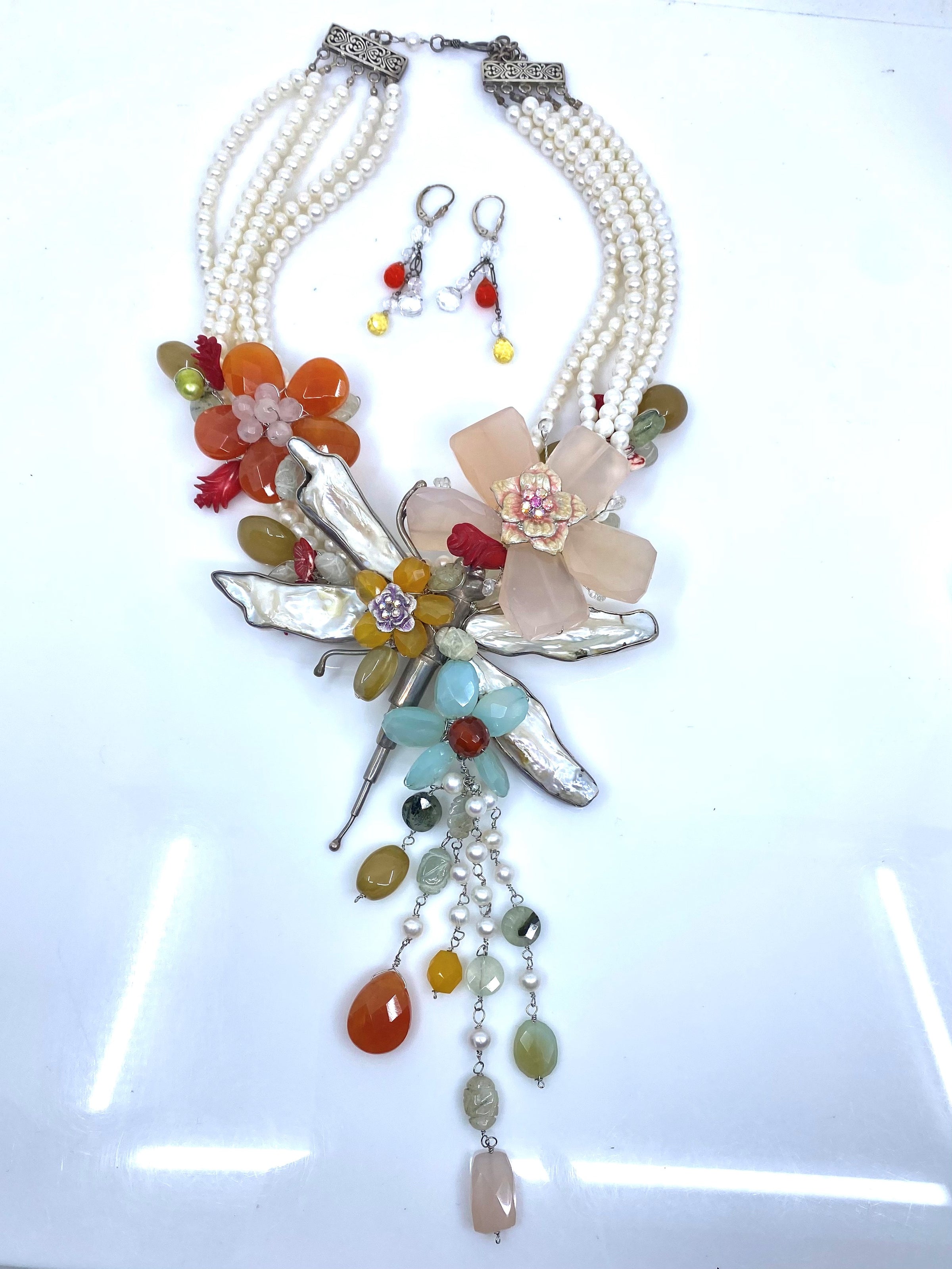 The Most Fantastic Pearl Dragonfly Flower Necklace of all time!